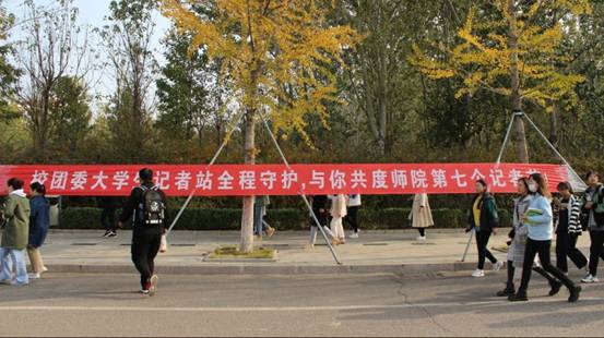 11月8日,校园里有这样一群人,早已拉好横幅,“校团委大学生记者站全程守护,与你共度师院第七个记者节”,摆好桌子,一个个精心准备的礼物,一个个热爱新闻的人,早早地等候在了师院一餐三岔路口。