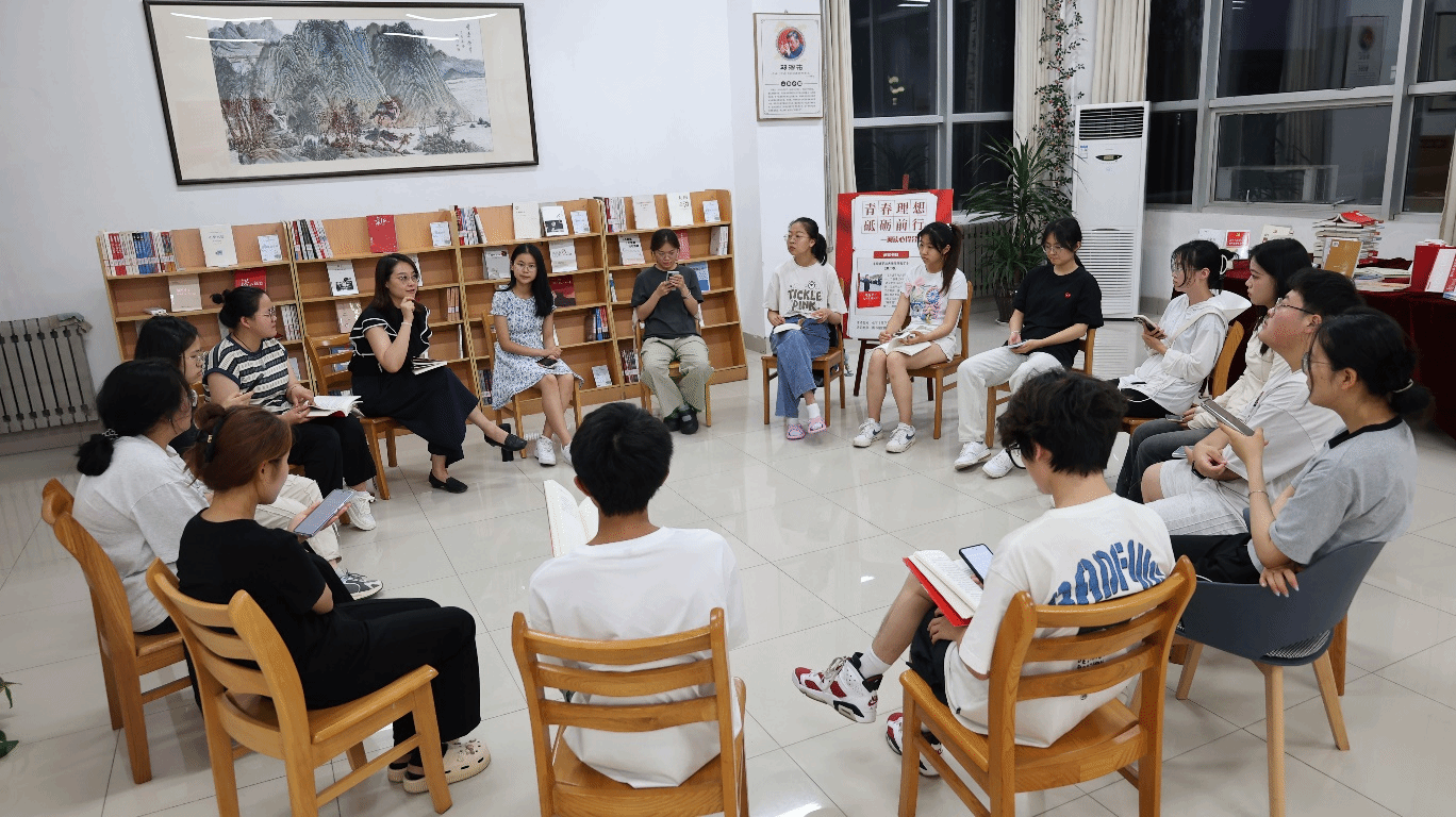 为助力校园阅读引领,涵育青春风尚,6月15日,图书馆在文脉书斋举办了“青春理想、砥砺前行”阅读分享会。本次活动以《习近平与大学生朋友们(第二卷)》为阅读书目,通过与学生读者共同阅读习近平总书记工作期间重视关怀青年成才的故事进行心得交流,引领广大学生坚定信念、启智增慧。