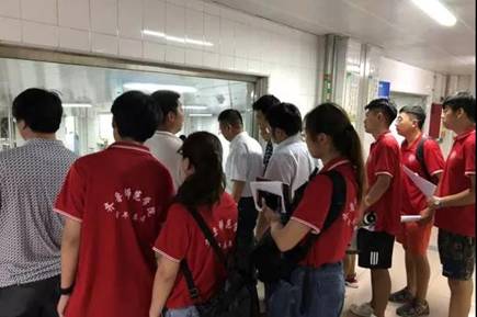 7月23日上午9点,齐鲁师范学院物理与电子工程学院“梦圆”服务队来到了位于德州的山东雪榕生物科技有限公司。对该产业园区的生产流程和工人工作情况进行了实地调研,了解到生产线大多由机器+人工的生产方式,流水线上自动化尚未完全取代人工,但自动化生产流水线仍然给服务队成员带来了极大震撼。下图为雪融生物有限公司员工为服务队成员讲解金针菇生产流程