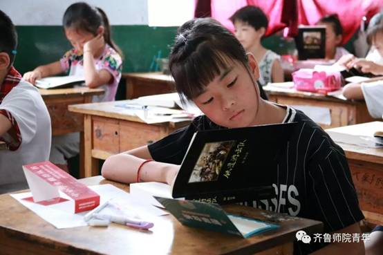在接下来的阅读课,结合我队“红色教育”的主题以及学生的阅读水平,我们选定的阅读书目为知侠所著《铁道游击队》。志愿者给小朋友们分发了阅读卡、书籍、书包、盆栽,孩子们收到礼物后非常开心。