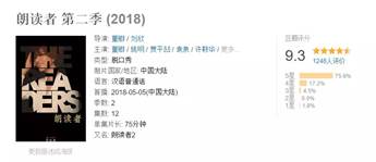 和第一季相比,嘉宾类型、话题的开合度都更大了。走上舞台的朗读者,有科学家、作家、企业家、野生动物保护者、演员、导演……读本选择的内容更广了,纵横古今中外,跨越不同题材,着实是一场文化的饕餮盛宴!(豆瓣评分9.3)