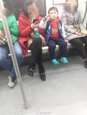 成都地铁3号线上正播放歌曲《红旗飘飘》,当唱到“五星红旗 你是我的骄傲”时,这位小朋友立刻对着电视敬了一个礼。