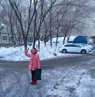 本打算跑进校门时,升旗仪式的国歌响起,9岁的王思睿立刻原地立正,行了一个标准的少先队队礼,直到国歌结束。