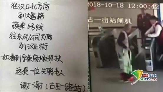 一则网传视频显示,一名老人在地铁自动检票机附近徘徊不定,随后一位女工作人员主动上帮忙,并留下写有详细乘车方式的字条,希望路上有人能够对这位老人提供帮助。