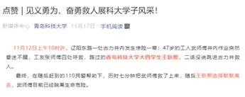 近日,青岛科技大学大四学生王跃熙的事迹在网络热传。此前的11月12日,王跃熙见义勇为救起井下昏迷工人,而后来发生的事,网友更是怒赞!
