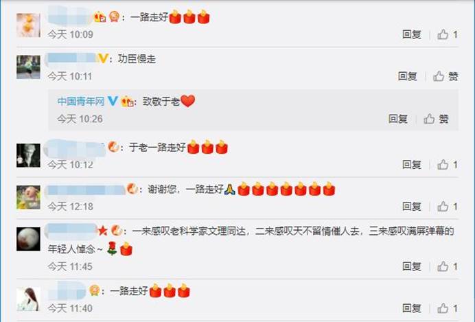 网友@暖暖就是我 说:一来感叹老科学家文理同达,二来感叹天不留情催人去,三来感叹满屏弹幕的年轻人悼念。