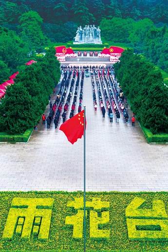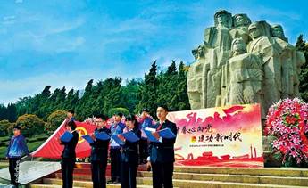 围绕纪念五四运动100周年,江苏省各级团组织集中开展“青春心向党·建功新时代”特别主题团日活动,组织共青团员重温革命历史、传承红色基因,增强听党话、跟党走的思想自觉和行动自觉。图为2019年4月29日上午,江苏省各界青年代表在南京雨花台烈士群雕广场庄严肃立,集中开展默哀致敬、集体朗诵、重温誓词、主题微团课等活动。 团中央宣传部供图