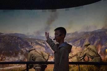吴起县革命历史博物馆里,10岁的杨浩迪在讲解红军的故事。