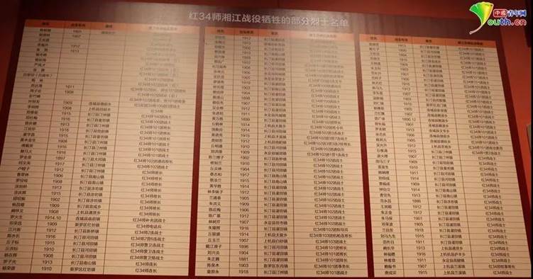 红军第三十四师湘江战役中牺牲的部分烈士名单。