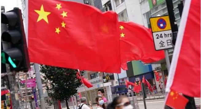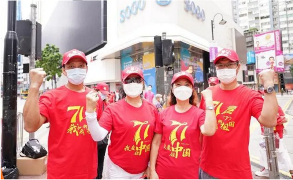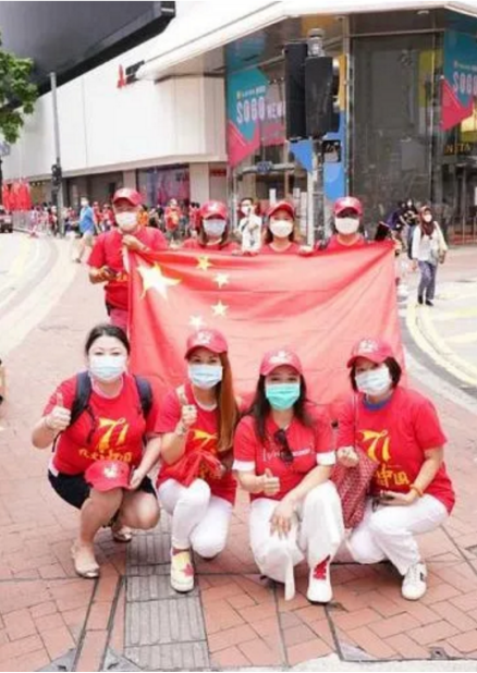 香港市民自发在街头举起多面国旗