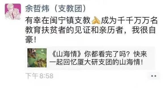 余哲炜住院期间仍参加线上党课,分享支教经验。