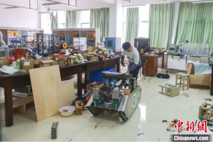 在实验室里,刘鑫正在操作智能爬楼轮椅。