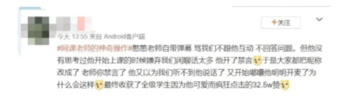 比如,老师因为同学们不跟他互动、不积极回答问题而生气,但同学们也很憋屈:老师还不是你开了禁言
