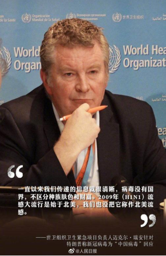 一些西方媒体和政客对中国的努力视而不见,甚至使用“新型冠状病毒肺炎”“中国病毒”等带有明显污名化色彩的表述。近日,世卫组织呼吁所有人避免将病毒同某个地域联系起来,应避免将新冠病毒称为“中国病毒”,这不利于团结合作共同抗击疫情。世卫组织卫生紧急项目负责人迈克尔·瑞安说:“2009年的(甲型)H1N1流感大流行起源于北美,我们没有称它为‘北美流感’。所以涉及其他病毒时,我们采用同样的命名方法是非常重要的。” 语言不仅仅是人们用来沟通的工具,语言修辞从来不像它表现的那么简单,在某种程度上它影响着人们对事物的认知和理解。