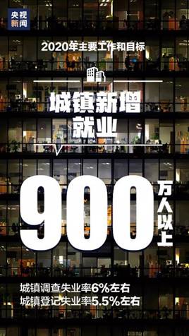 ◆城镇新增就业900万人以上,城镇调查失业率6%左右