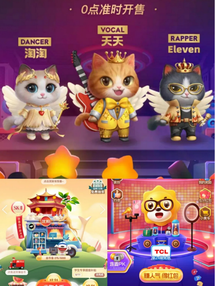 今年你喂猫了吗,还是被迫营业了,还是做直播了呢?今年淘宝,京东,苏宁分别推出了“超级星秀猫”,“全民营业”,“人人皆可播”的活动,大概都是以“做任务赢红包”为主要的形式。