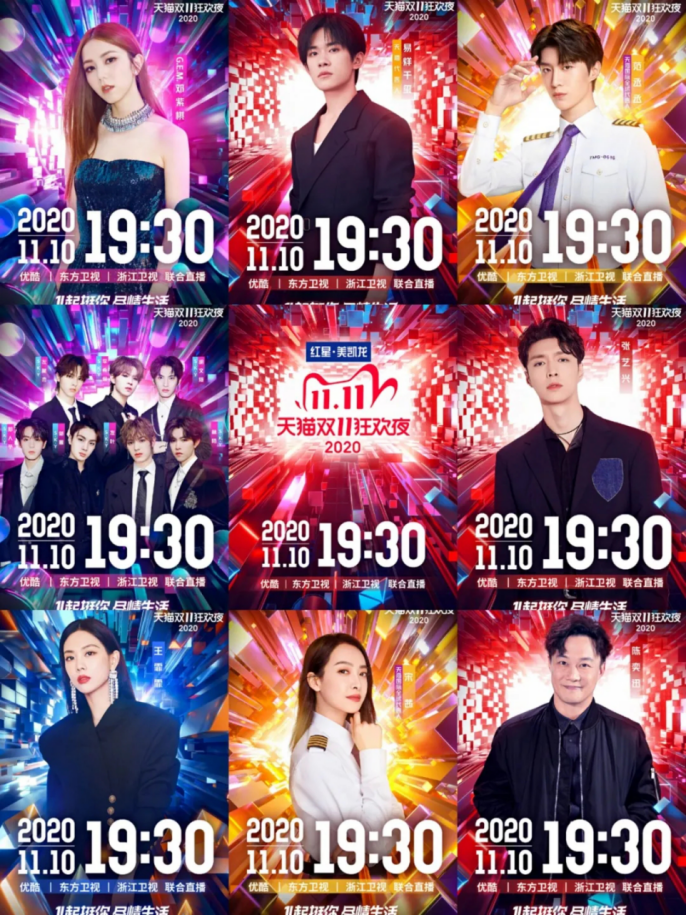 除此之外,还会有双十一晚会等着大家,湖南卫视31号的天猫双十一开幕式晚会已经结束,11月10号在优酷等网络平台,东方卫视,浙江卫视播放,大家可以届时观看。