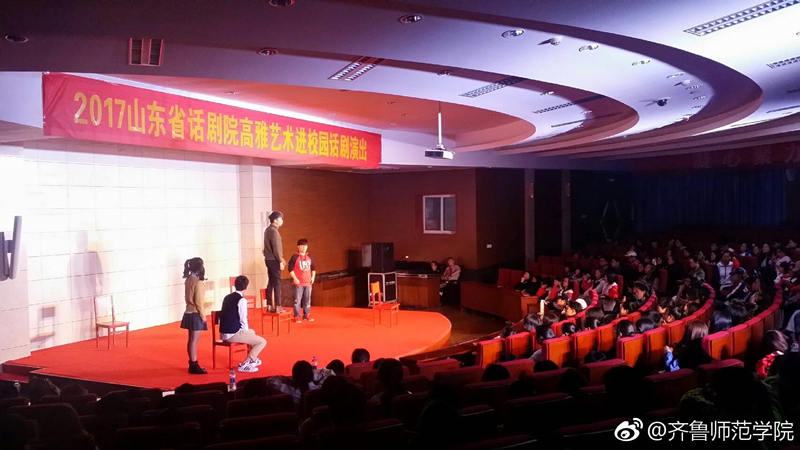 近日,由山东省文化厅、山东省教育厅主办的2017“高雅艺术进校园”巡演走进我校。4月26日至27日晚,山东省话剧院创作的话剧《青春禁忌游戏》在我校章丘校区图书馆报告厅精彩上演。院党委宣传部、学生处、团委负责同志,各院系教职工及600余名学生到场观看了演出。