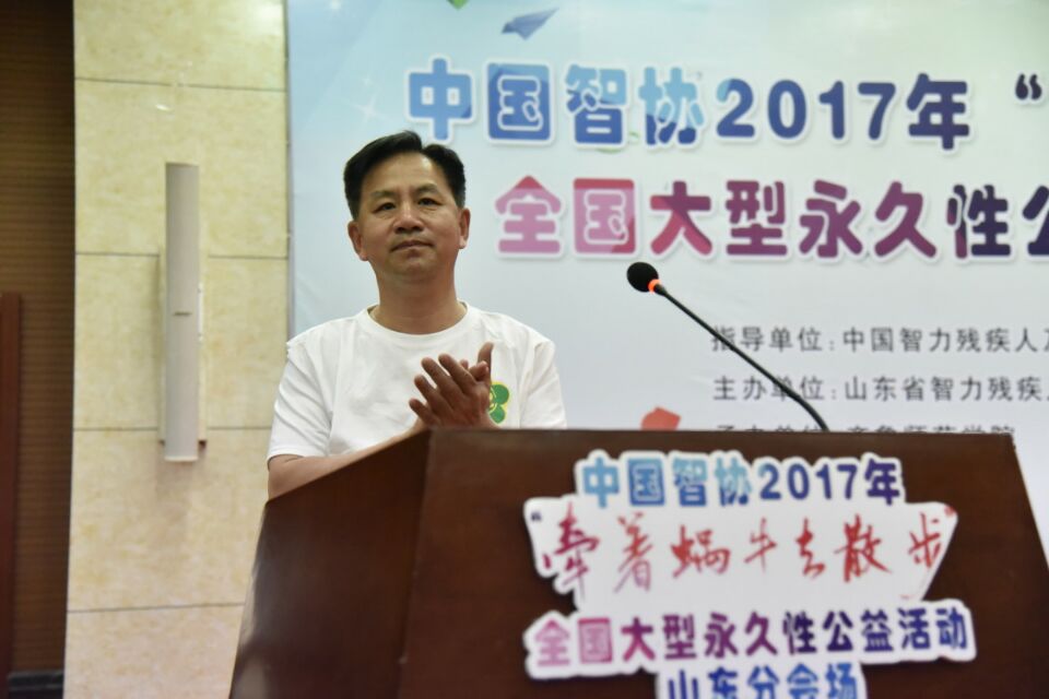 在第二十七个全国助残日来临之际,5月12日上午,由山东省残联、山东省智力残疾人及亲友协会主办,齐鲁师范学院和济南市泺源学校共同承办的中国智协2017年“牵着蜗牛去散步”全国大型永久性公益活动山东分会场启动仪式在齐鲁师范学院章丘校区隆重举行。