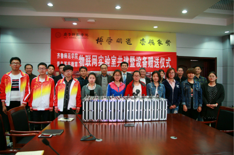 4月19日,我校与青岛英谷教育科技股份有限公司(以下简称青岛英谷教育)在章丘校区图书馆四楼会议室举行物联网实验室校企共建暨设备赠送仪式。副校长张福建,青岛英谷教育董事长韩敬海出席仪式并讲话。赠送仪式由教务处处长梁承锋主持,青岛英谷教育项目总监宁维巍博士、我校实验管理中心主任张峰、教务处副处长张延昌、信息科学与工程学院院长李树金、信息科学与工程学院党总支书记贾国斌出席赠送仪式,共同参加赠送仪式的还有信息科学与工程学院的部分师生代表。