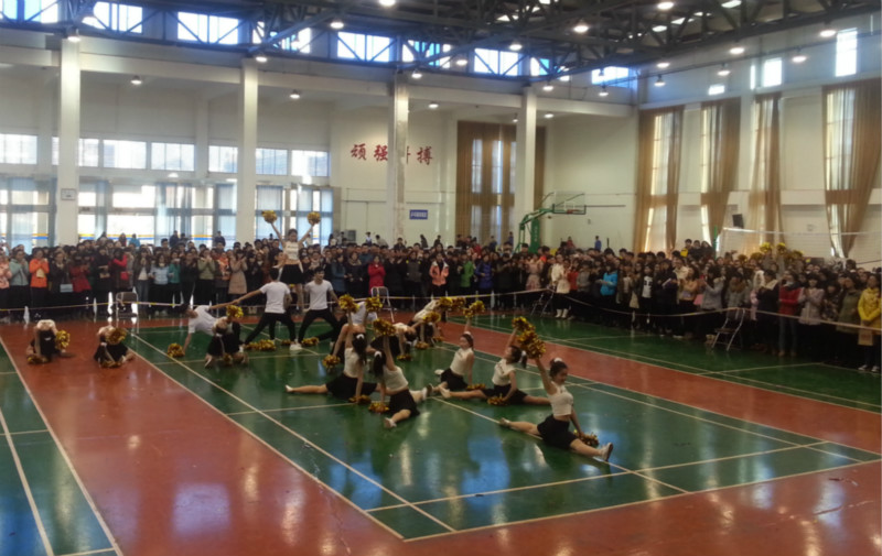12月17日下午,由体育学院组织承办的2015年齐鲁师范学院啦啦操大赛在章丘校区体育馆举行。此次比赛受到了学校及各部门领导的重视,副校长张福建、教务 处处长梁承锋、宣传部部长宋新刚、体育学院院长刘健等领导出席了本次比赛。比赛评委团由体育学院的七位专业老师组成,由张立天老师任主裁,评分标准及流程 均采用国际比赛规则要求,保证了比赛的公平、公正、公开。