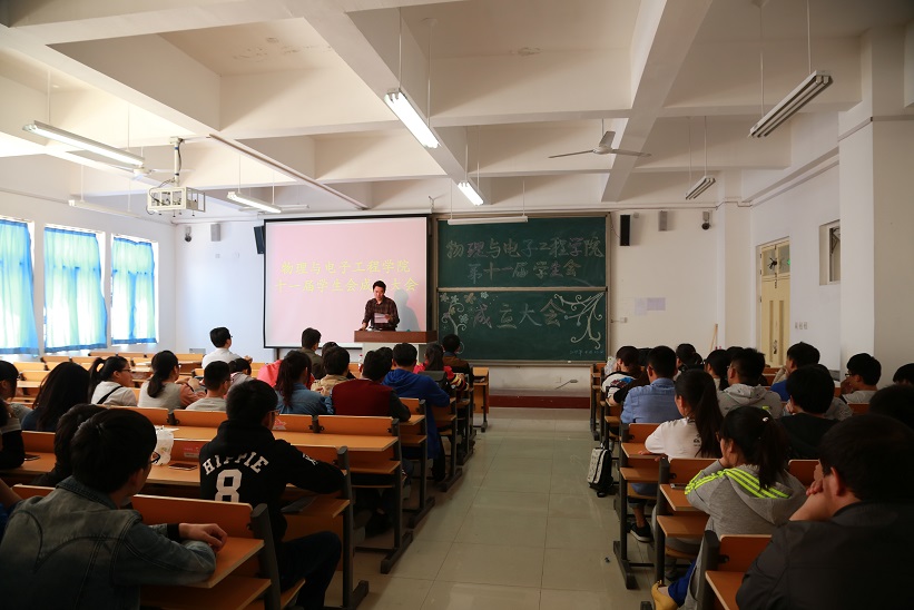 2015年4月23日中午12:30,物理与电子工程学院第十一届学生会成立大会在2号教学楼A209隆重举行。