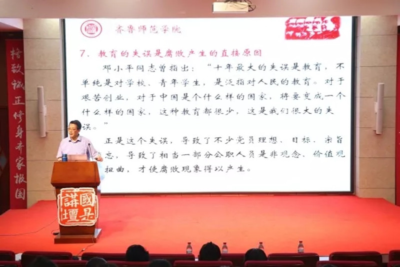 国是讲坛第二十五讲“何为腐败,怎样反腐败”讲座,马克思主义学院院长刘振光教授通过“何为腐败”、“怎样正确对待腐败”两部分内容,对腐败这一概念及其危害和产生的原因进行详细分析,并重点阐述了新时代大学生当如何正确看待反腐败这一问题。校团委书记孔庆松作为辅讲对刘振光讲授的报告进行了总结概括,指出刘教授将腐败这样一个严肃的政治问题、深奥的理论问题从学理和现实两个方面做了精辟的诠释和解读,号召广大学生须严守道德和法律的底线、不突破纪律的红线、不触碰政治这条高压线。