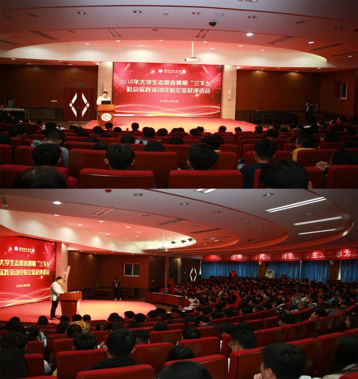为深入贯彻习近平新时代中国特色社会主义思想,学习落实党的十九大精神,引领教育我校青年学生奉献社会,勇担民族复兴大任,11月20日下午,我校2018年大学生志愿者暑期“三下乡”社会实践活动经验交流及评选会在章丘校区图书馆学术报告厅隆重举行。党委委员、副校长张福建出席会议,学生工作部(处)、团委负责人、各学院党总支书记、副书记、团总支书记、辅导员、社会实践指导教师及社会实践团队全体人员参与会议。