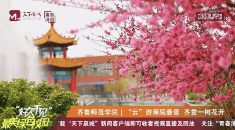 “云”游师院春景,齐赏一树花开。4月10日上午10点,由共青团济南市委、济南广播电视台联合发起的“好久不见——最美校园”融媒直播第七站走进了齐鲁师范学院。