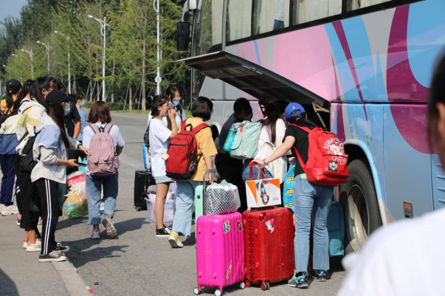 返校学生在进行身份证、校园一卡通、电子健康通行码核验,以及体温测量后,由指定通道进入校门,在学院报到处提交返校承诺书,扫描签到二维码进行报到注册及返校条件复审。根据学校疫情防控工作要求,返校学生随行人员不能进入校门,为给学生提供更加便利的服务,学校安排了校内临时摆渡车帮助学生运送行李。还有更多热心同学,顾不上收拾宿舍,放下行李就加入了帮助其他同学搬运物品的志愿大军之中,安静的校园顿时充满了生机活力与温暖。