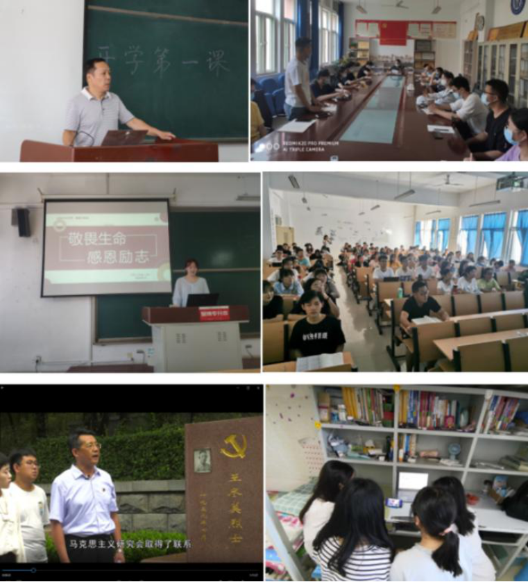 根据上级部门有关文件精神,结合我校实际,学校建立“敬畏生命、爱国励志”开学第一课教育资源库,既涵盖敬畏生命、公众卫生知识普及教育、如何从“新冠”疫情之战看“四个自信”、树立正确的价值观、青年大学生厚植爱国主义情怀主题教育等内容,又包含了由我校马克思主义学院刘振光院长主讲的“缅怀先烈英勇事迹,叩问党的初心使命”的视频党课。自8月29日首批学生返校后,各学院纷纷通过线上线下、报告座谈相结合的方式,由党总支书记、副书记带头讲好“开学第一课”,切实将疫情防控期间的思想政治教育落到实处、取得实效。