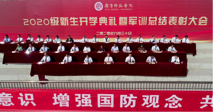 9月30日上午,我校2020级新生开学典礼暨军训总结表彰大会在章丘校区田径运动场隆重举行。校党委书记王玉华,党委副书记、校长林松柏,党委副书记刘宝君,副校长刘德增,党委委员、副校长张福建,党委委员、副校长王海,党委委员、纪委书记、监察专员李启波出席典礼。典礼由张福建副校长主持。