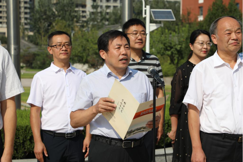 为培养大学生的家国情怀,弘扬爱国主义精神,增强文化自信,践行社会主义核心价值观,贯彻党的教育方针。9月30日,我校在齐鲁文化长廊杏坛阁下成功举行齐鲁文化长廊有声解说启动仪式。出席本次仪式的学校领导有党委书记王玉华教授,党委副书记、校长林松柏教授,党委副书记刘宝君,副校长刘德增教授,党委委员、副校长张福建教授;学校有关部门负责人、历史与社会发展学院的师生以及2020级新生代表。仪式由党委副书记刘宝君主持。