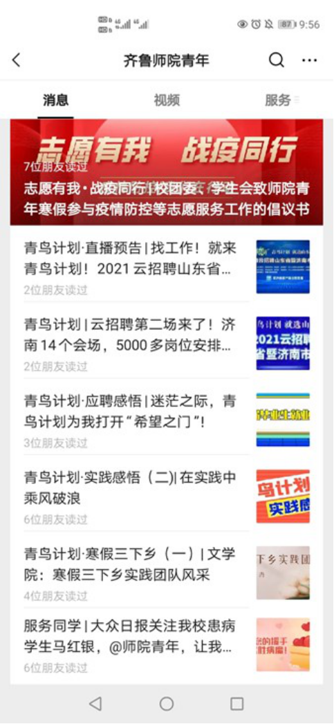 为进一步提升青鸟计划云招聘活动影响力、服务力,校团委还从“技、践、思、力、时”五个重点层面上下功夫。从“技”上下功夫,重点涵养学生面试技巧。通过“齐鲁师院青年”微信公众平台,面向学生进行面试技巧、简历制作技巧等培训,为学生应对线上面试提供经验积累;从“践”上下功夫,重点培养学生实践能力。今年寒假,面向全校学生发布《关于开展2020-2021学年度大学生志愿者寒假“三下乡”社会实践活动的倡议》,120余名大学生参与青鸟计划实习实践;从“思”上下功夫,重点培育学生反思能力。每次云招聘活动,都会联系学生撰写面试感悟,让学生进一步明确自身存在的问题以及下一步的打算等,不断完善自己;从“力”上下功夫,重点提升共青团服务力。校团委成立青鸟计划工作专项小组,除了做好直播、面试提前预热工作,小组成员还会轮流进入各会议检查网络是否卡顿,声音是否完好,确保学生面试过程顺利;在招聘会结束之后,小组成员还会进行电话回访,征求学生意见,并及时汇总、反馈给团省委。从“时”上下功夫,重点提升岗位传递时效性。确保岗位发布快速、高效、精准,在接收到团省委海量岗位的第一时间立即进行岗位筛选、择优工作,并及时发布到“齐鲁师院青年”微信公众号和青鸟计划交流群、青鸟驿站群中,为学生面试提供尽可能充足的时间。