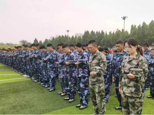 上午10时,防空警报响起,全校受训学生和教官纹丝不动,慎终追远,肃立默哀,以此缅怀英勇无畏的抗战志士与革命先烈。