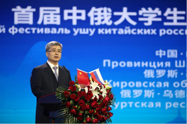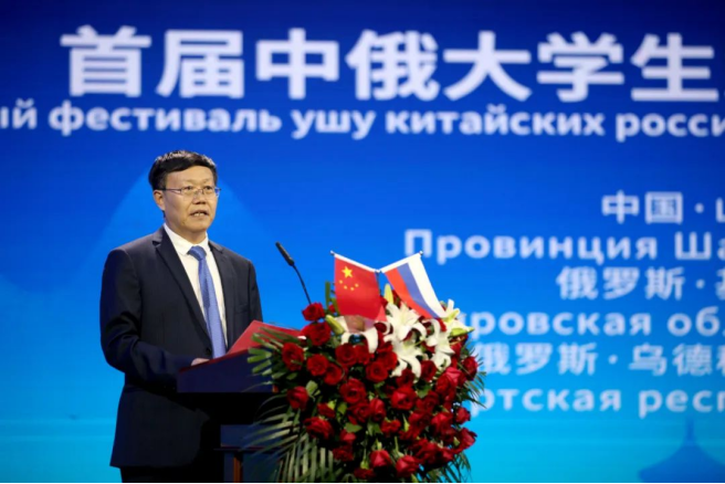 孙业宝代表省政府欢迎俄方两地积极参与此次中俄大学生武术文化交流会,回顾了我省与俄罗斯合作伙伴共同打造教育国际合作高端平台的一系列里程碑式的活动,希望此次中俄大学生武术文化交流会能够发挥中国传统武术经久不衰的文化魅力和国际影响力,办出自己的特色和品牌。同时,期待山东省与基洛夫州和乌德穆尔特共和国能够充分借助本次活动,加强沟通了解,找准合作定位,丰富交流形式,以教育合作为契机,推动两省州经济、文化等领域交流合作不断迈向新台阶。