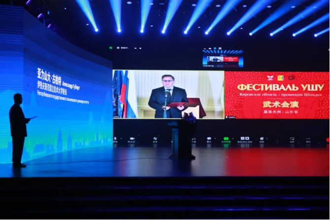 此次举办线上“首届中俄大学生武术文化交流会”的俄方两所高校以及两地政府对于此次活动高度重视。基洛夫州州长亚历山大·瓦伦蒂诺维奇·索科洛夫发来贺辞,强调了教育合作在国际合作中拥有特殊地位、优秀人才及科学潜力,为当地的社会经济发展做出了重大贡献。他希望此次会议将成为交流经验及专业对话的开放平台,同时也是加强伙伴关系、规划教育及合作新领域的绝佳机会。乌德穆尔特共和国国家政策部长爱德华·彼得罗夫和教育部长斯韦特兰娜·博洛特尼科娃也分别采用现场发言和录制视频的方式致辞,表达了全面支持与山东省开展合作、尤其是教育领域合作的友好意愿。他们希望在当地拥有较高科学教育潜力、丰富国际合作经验和做出巨大贡献的伊热夫斯克国立技术大学能够与我校协作发挥两校共建的“中俄语言文化中心”的作用,由此开启该共和国与山东省友好合作的新途径。维亚茨克国立大学和伊热夫斯克国立技术大学的二位校长也分别表达了对与齐鲁师范学院开展武术交流、合作办学、中俄语言教学等项目合作的期待和美好祝愿。