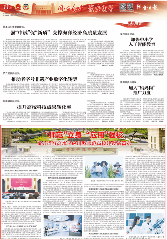 1月20日,山东省政协机关报《联合日报》两会特刊以《“师范”立身 “应用”强校 奋力谱写高水平应用型师范高校建设新篇章》为题,对我校党建引领高质量发展成果经验进行专题报道。