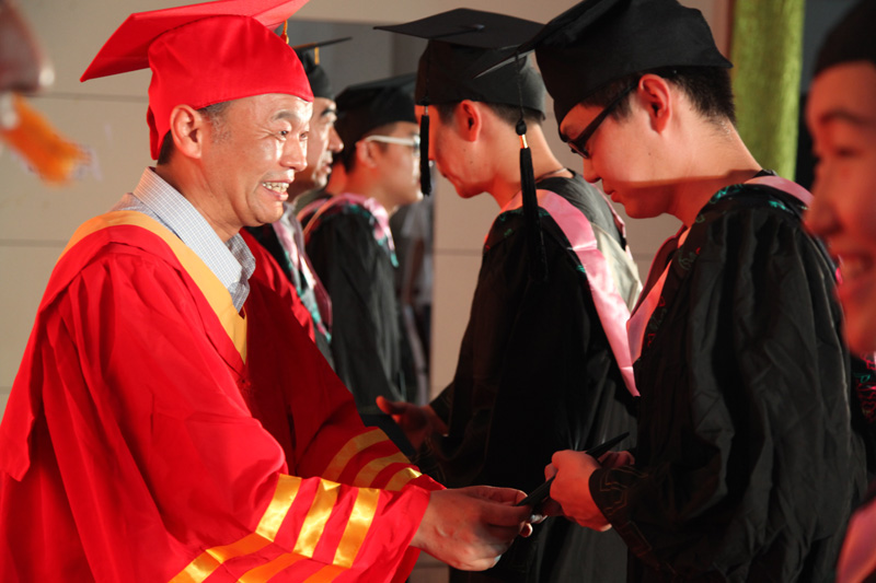 王玉华校长发表了热情洋溢的讲话。他首先代表校党委、校行政向圆满完成学业的2015届毕业生表示热烈的祝贺,殷切希望即将告别母校,奔赴新征程的毕业生们能够继续秉承“博学明道、崇德象贤”的校训,不断修炼内心、不懈强健体魄,希望他们踏踏实实学习,踏踏实实工作,将国家的繁荣昌盛和个人价值的实现结合起来,自觉践行社会主义核心价值观,兢兢业业,坚守职业,在更为广阔的天地里报效祖国,服务人民。
