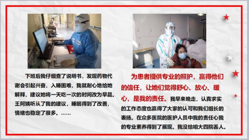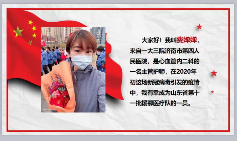 深挖时代责任,青年有力量。五四期间,我校将邀请山东省第十一批援鄂医疗队队员费婵婵为青年学生作线上事迹报告,分享她与时间赛跑、同病魔较量,不顾个人安危舍小家为大家的抗“疫”经历,相信以她为代表的共产党人在疫情防控的阻击战中树立的鲜明旗帜,将为这场报告提升高度、增添温度、扩展宽度,相信共产党人与医护人员无私奉献、奋勇抗争的意志品格,会让师院的青年朋友们在聆听中受到“战疫”精神的洗礼。