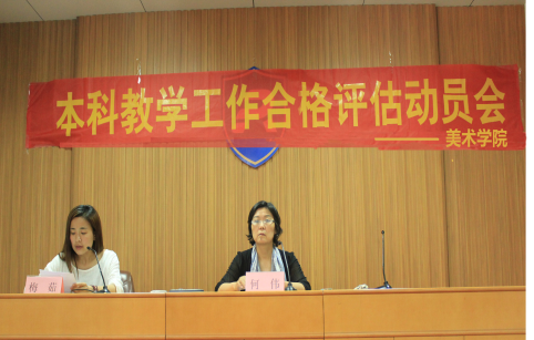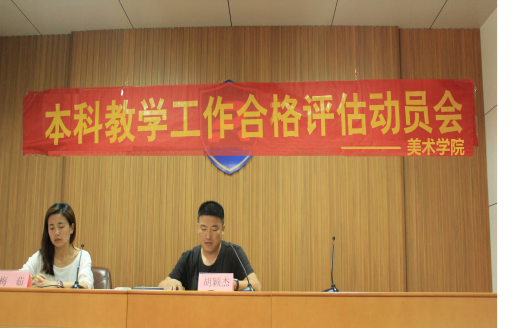 根据教育部及省教育厅的要求,我校将要接受教育部本科教学工作合格评估。此次评估是国家教育部对我校本科教学工作、师生员工的精神风貌和学校各项工作的一次全面检阅和全方位评价,为切实做好6月14-15日本科教学工作自评估学生迎评工作,营造良好迎评氛围,5月29日下午美术学院在图书馆二楼报告厅召开了“美术学院本科评估动员大会”。