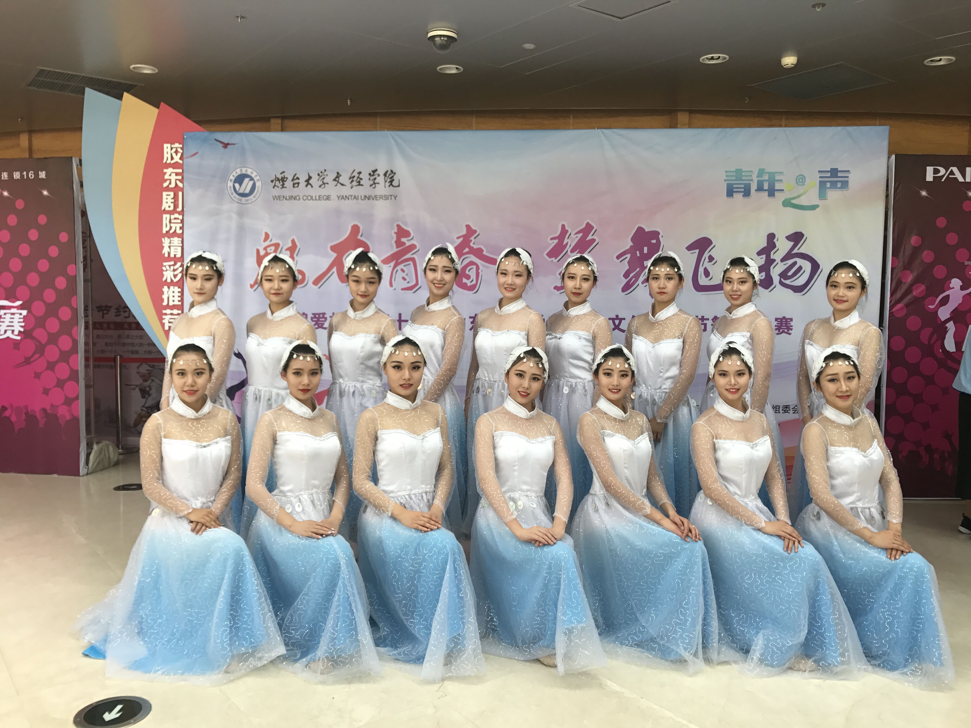 6月7日至6月9日,在烟台举办的山东省第十五届大学生科技文化艺术节舞蹈大赛中,我院参赛作品《绽放》获得专业组单项三等奖,原创舞蹈剧目《我希望》获得专业组群舞三等奖。我院2015级舞蹈学丁研如、邹瑜琨同学代表我院与其他专业院校同学一起排练、参加颁奖典礼的开场舞表演。