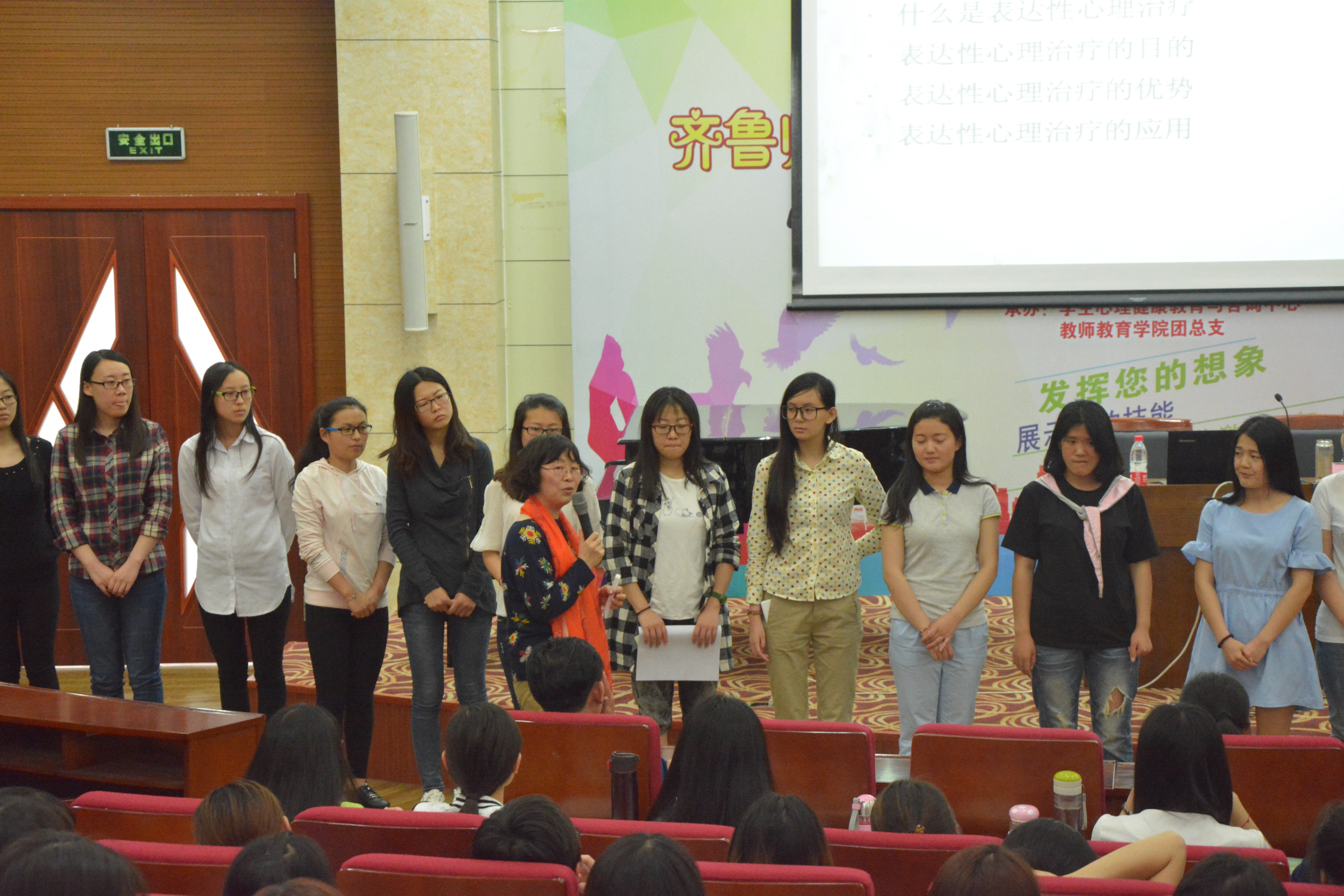随后,苏教授邀请同学进行了表达性心理辅导的涂鸦与创 作、人际关系感触等体验活动,让同学们现场体验了表达性心理辅导的独特魅力和本质,表达性心理辅导即自由的表情达意,它的魅力还在于是一种心像思考,常常 能启发人的更多想象及灵感,促进创造力和洞察力的产生,同时能让人减少防卫,把内心的真实情况表达出来。