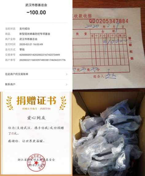 “病毒无情,人间有爱”,疫情形势日趋严峻,外国语学院学子涌现出一批像2017级学生党员杨淇,2019级学生党员秦黄欣等的捐赠者,他们通过各大疫情救助捐赠的线下或网络平台进行爱心捐款捐物,为社区或疫区尽上自己的一份绵薄之力。他们以青春的名义参战,用年轻血液的流动、年轻生命的加盟展现出新时代学生勇于担当、甘于奉献的精神风貌,与国家共同携手,打赢这场没有硝烟的战“疫”。