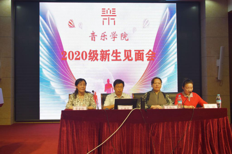 9月24日上午,音乐学院2020级新生见面会在图书馆报告厅隆重举行。音乐学院党总支书记王德民、院长万梅红、副院长常爱玲及办公室、团总支负责人、辅导员、新生班主任和2020级全体新生参加了见面会。会议由音乐学院党总支副书记马艳主持。