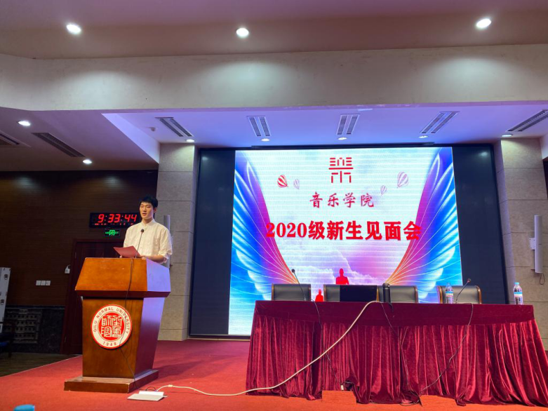 随后,我校2020年最美教师、新生班主任宋振军老师,学生会郭津源,2020级音乐学院1班聂闻志进行了代表发言。
