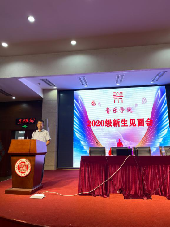 会议在雄壮的国歌声中拉开帷幕,313名2020级新生展现出了昂扬向上的精神面貌。会议先由音乐学院院长万梅红致辞讲话。万院长向同学们全面介绍了音乐学院的发展、教学特色及教学成果,并围绕“崇仁成乐”的院训,从厚植家国情怀、勇于创新担当、锤炼崇实品格、做好学业规划四个方面叮嘱新同学们要把好正确的人生方向,学会控制自己的时间,充分挖掘自身潜力,不忘初心,努力奋斗。