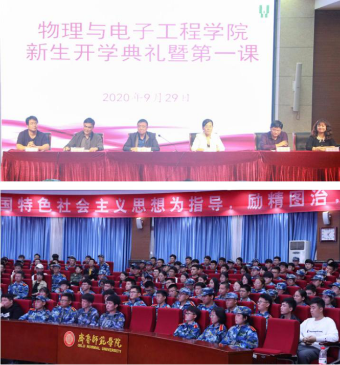 9月29日下午,物理与电子工程学院新生开学典礼暨第一课在学术报告厅举行。学院领导、教师代表、全体辅导员和2020级全体新生参加。大会由学院团总书记李华主持。