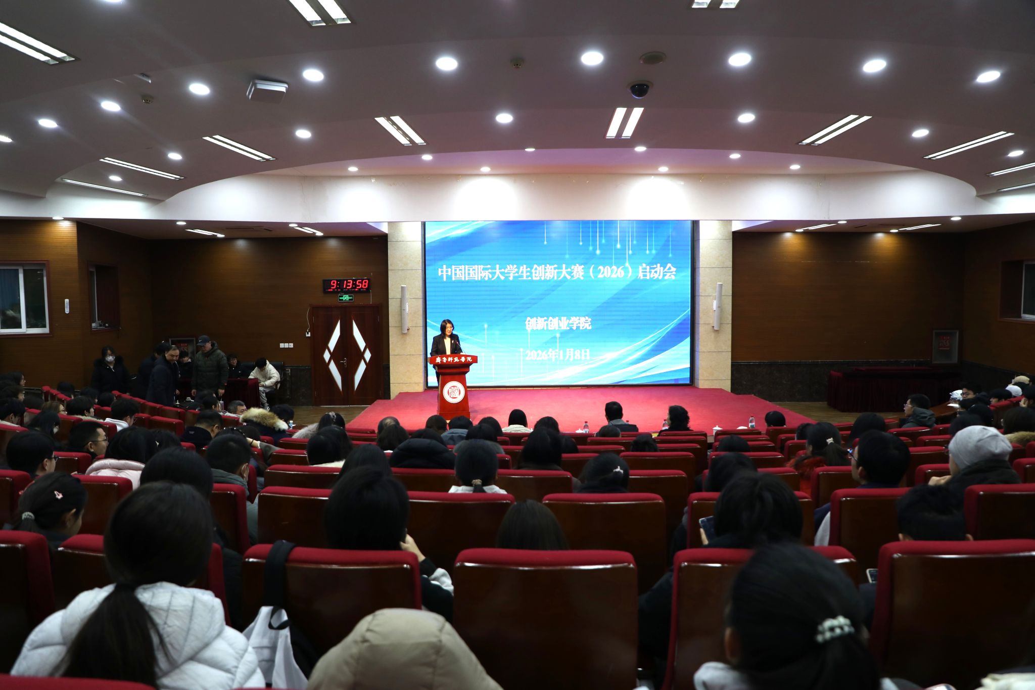 1月8日,齐鲁师范学院中国国际大学生创新大赛(2026)启动会在章丘校区第一学术报告厅顺利举行。学校党委副书记、校长郑秀文,党委副书记赵敏,相关职能部门负责人、二级学院党委副书记及与会师生共同参观了在图书馆二楼举办的创新创业教育成果展。学校党委副书记赵敏出席启动会并致辞,会议由创新创业学院院长蔡平主持。