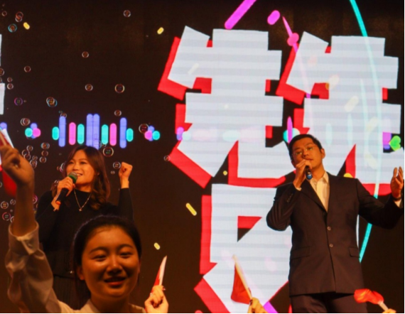 晚会下半场异彩纷呈。《物电学院的秘密style》魅力十足、小品《贼不容易》风趣幽默、古典舞《多情种》婉约凄美、情景剧《云烟成雨》令人动容、《韩舞串烧》热辣炫酷、相声《我是歌手》令人捧腹大笑、歌曲《我乘着风飞过来》青春飞扬,还有动感十足的《啦啦操》表演为全场观众献上了一场视听盛宴,让人大饱眼福。最后,由在场全体师生压轴倾情演唱的结尾曲《赞赞新时代》再次点明晚会主题,激励同学们在新的一年更加努力,用自己的青春向祖国告白,为实现中华民族伟大复兴的中国梦而不懈奋斗。